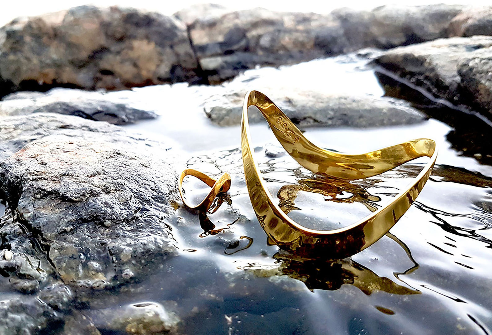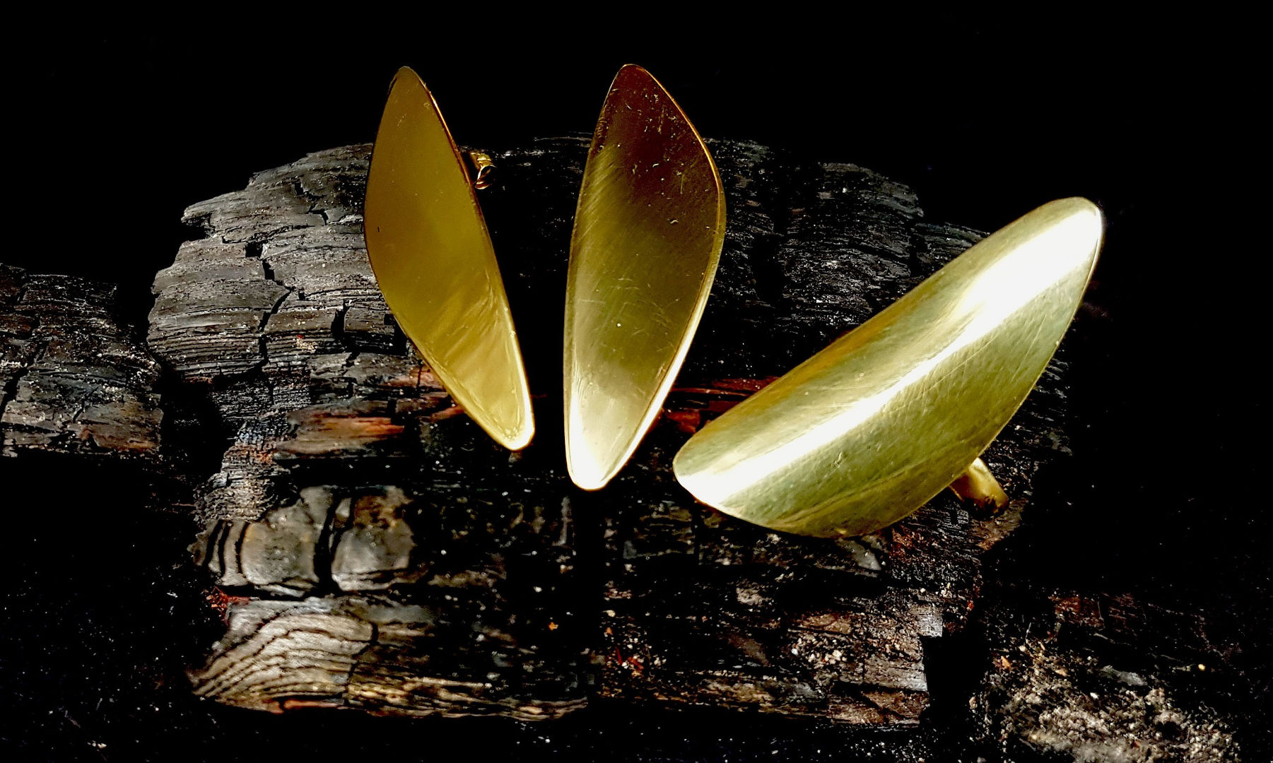 Il materiale di base utilizzato in tutte le collezioni è l’ottone, derivato dal riciclo di residuati bellici estratti dal suolo cambogiano, placcati in oro per mantenere il colore inalterato nel tempo.