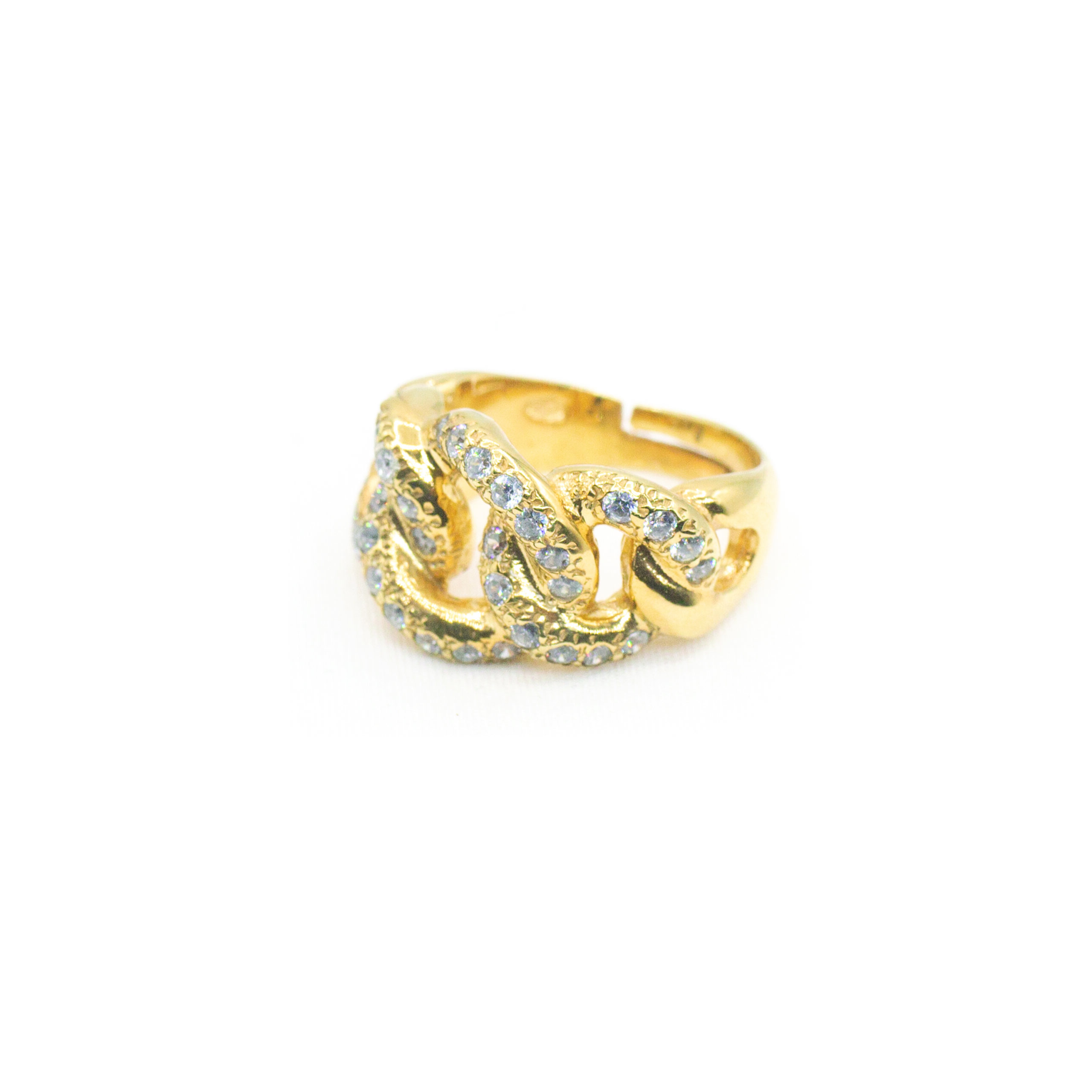 Anello groumetta con pietre taglio brillante zirconi bianchi. Gambo regolabile per adattarlo alla tua misura.