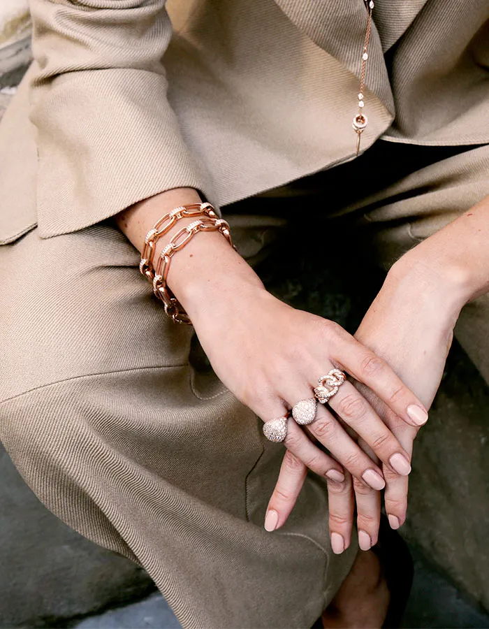 Anello Grumetta pavè in argento 925, argento rosè o dorato con uno studio  particolare di incassatura  mista, arricchito da pietre taglio Bianche. Gambo regolabile per adattarlo alla tua misura.