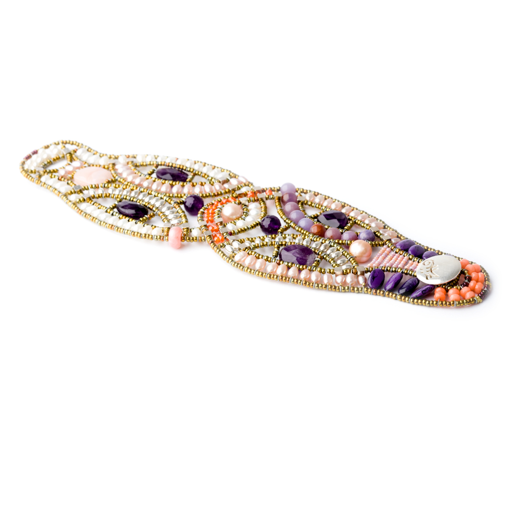 Composizione: Ametista, Perle di vetro di Murano, Opale, Fosfosiderite, Argento 925, Perle d’acqua