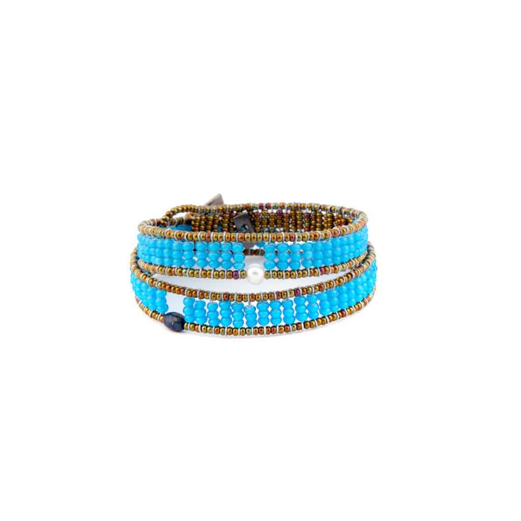 Composizione: Calcedonio blu, Lapislazzuli, perle di vetro di Murano, Argento 925, Perle d’acqua.